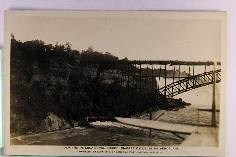 Card # 155513. View Larger | Rotate Aviator Lincoln Beachey’s Flight Under Niagara Bridge, Real Photo w/ AZO P.C. back VF