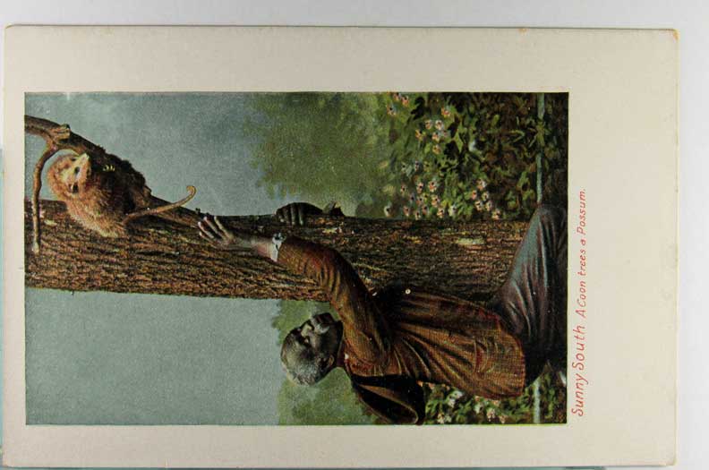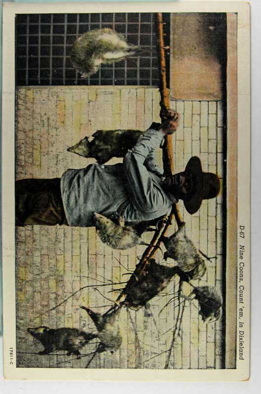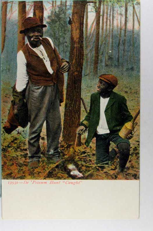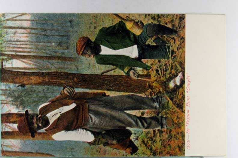 Card # 195792. View Larger | Rotate Tinted Printed Photo, “De Possum Hunt Caught” UB VF