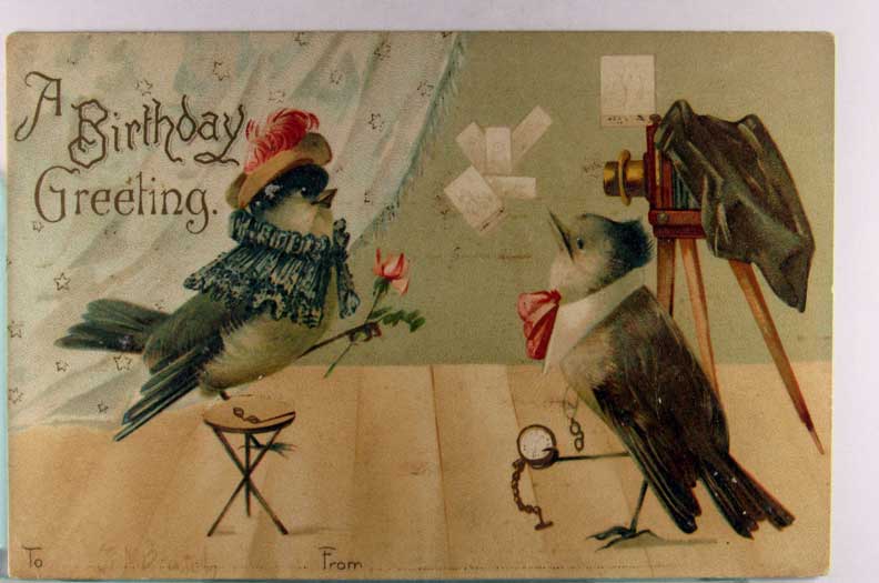 Card # 197259. View Larger | Rotate Camera w/ Fantasy Birds, Birthday Greeting, Int. Art Pub. Co. UB F-VF