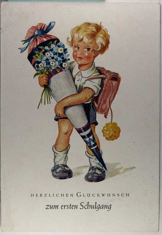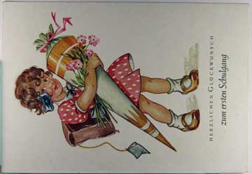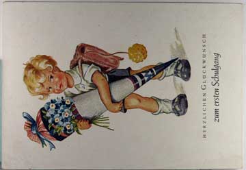 Card # 195660. View Larger | Rotate Child w/ First Day of School Cone, German Pub. Early Cont VF