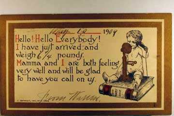 Card # 15784. View Larger | Rotate Birth Announcement w/ baby on Telephone, B. Lewis Pub. UB pwof F-VF
