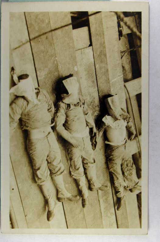 Card # 167446. View Larger | Rotate Macabre Hanged Men, Real Photo w/ AZO P.C. Back, Owner ID as “1924 San Jose Rape Suspects” cor wear F-VF