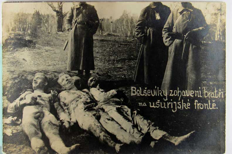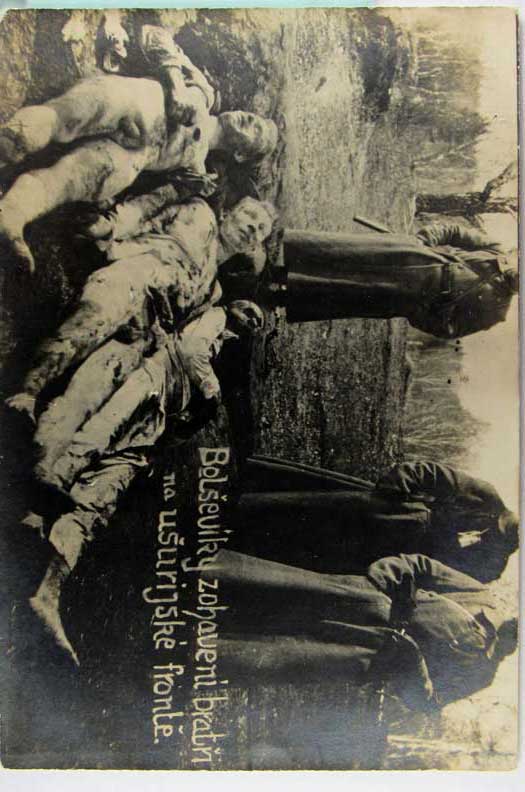 Card # 197467. View Larger | Rotate Dead Bodies, Czech Pub., Real Photo, “Bolseviky” m cor wear Near VF