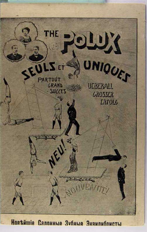 Card # 187118. View Larger | Rotate Acrobatic Act, Russian Pub., “The Polux Seuls et Uniques”, Printed Photo VF