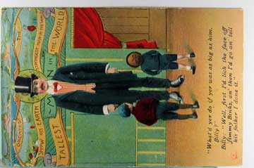 Card # 195515. View Larger | Rotate Tallest Man in the World Comic, Bamforth Pub., Used 1911 DB m cor wear Near VF