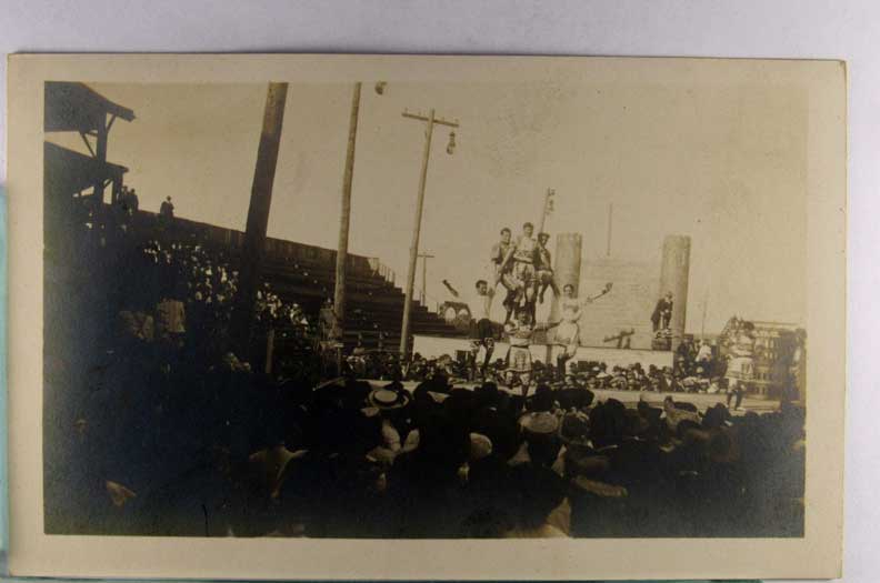 Card # 168332. View Larger | Rotate Performing Acrobats, Real Photo, Owner ID as “Co. Fair 1909” m wear Near VF