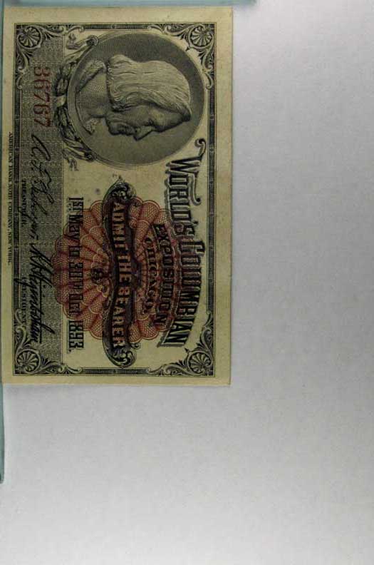 Card # 195672. View Larger | Rotate 1893 World’s Columbian Expo. Ticket VF