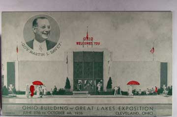 Card # 111408. View Larger | Rotate 1936 Great Lakes Expo., Cleveland, Ohio Bld. w/ Gov. Davey VF