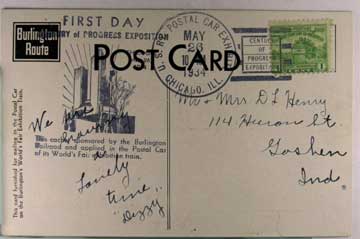 Card # 158692. View Larger | Rotate 1934 NYWF, First Day Usage w/ Postal Car Exhibit Cancel VF