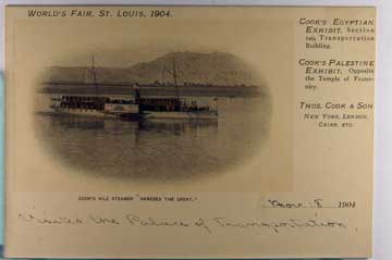 Card # 189650. View Larger | Rotate 1904 St. Louis World’s Fair, Cook’s Palestine Exhibit Ser., “Cook’s Nile Steamer” PMC pwof VF