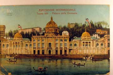 Card # 44498. View Larger | Rotate 1911 Torino Expo., German Building, used In Italy DB cor crs F