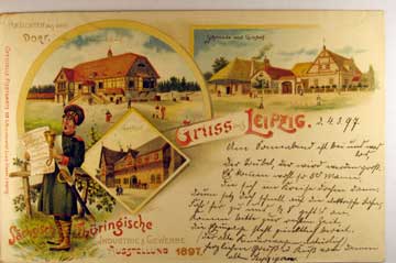 Card # 7805. View Larger | Rotate 1897 Leipzig, Sachsisch - Ausstellung, Glaser Pub. Off. Ser., #8, Used Leipzig 4-3-97 UB pwof & m cor cr F-VF