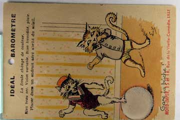 Card # 154258. View Larger | Rotate Fantasy Cats w/ Novelty Barometer, Non P.C. back Adv. Comedy Club crs & m wof Near F-VF