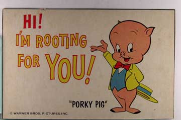 Card # 197333. View Larger | Rotate Warner Bros. cpr. Bugs Bunny Fun Postcards, Cut from Cereal Boxes, “Porky Pig” m edge nick Near VF