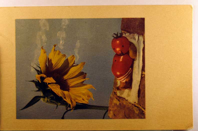 Card # 98219. View Larger | Rotate Fantasy Vegetables Ser., Sun Bathing Tomato Man, Colorful, Great, used Denmark 1956 m edge cr VF
