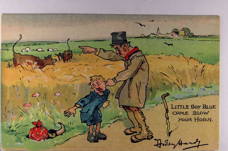 Card # 177548. View Larger | Rotate Fantasy Nursery Rhyme, Little Boy Blue, Art. Sig. Dudley Hardy, Davidson Bros. Pub., Ser. 310 DB m cor cr Near VF