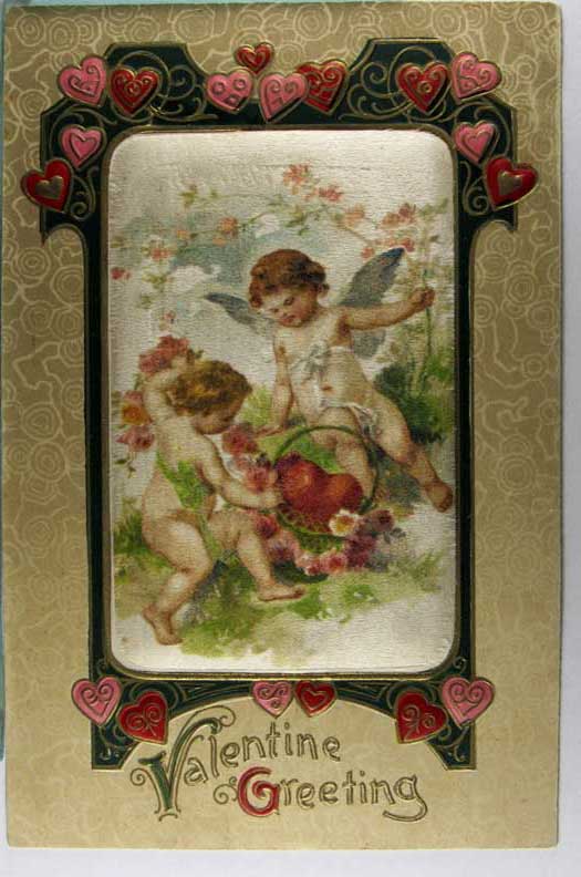 Card # 195864. View Larger | Rotate Valentine’s Day, Winsch Pub., w/ Novelty Printed Silk Add-On DB emb edge cr F-VF