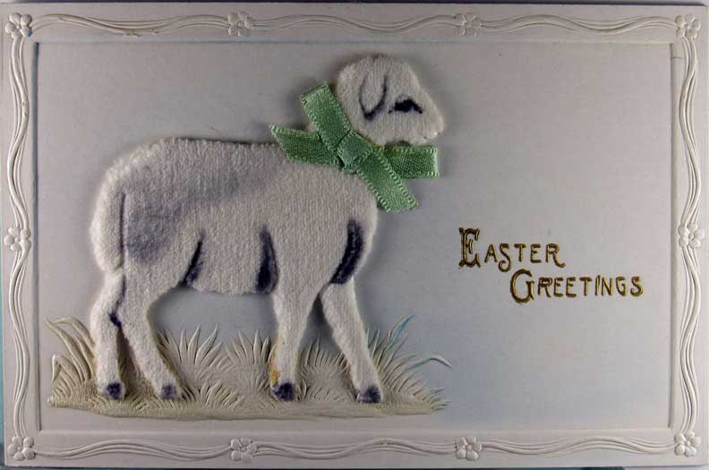 Card # 194957. View Larger | Rotate Easter, w/ Novelty Cloth Lamb Add-On DB emb VF