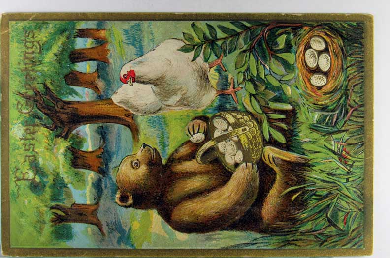 Card # 195819. View Larger | Rotate Easter w/ Fantasy Teddy Bear, Used 1911 DB emb m cor cr VF