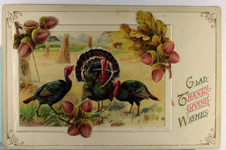 Card # 195846. View Larger | Rotate Thanksgiving, Winsch Pub., Novelty Die-Cut Add-Ons w/ Art by Schmucker DB emb VF