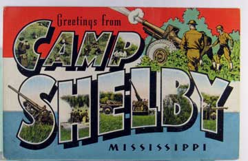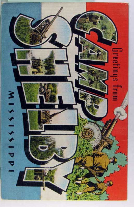Card # 185253. View Larger | Rotate U.S. Military, Camp Shelby, Mississippi, Large Letter Linen L m cor wear Near VF