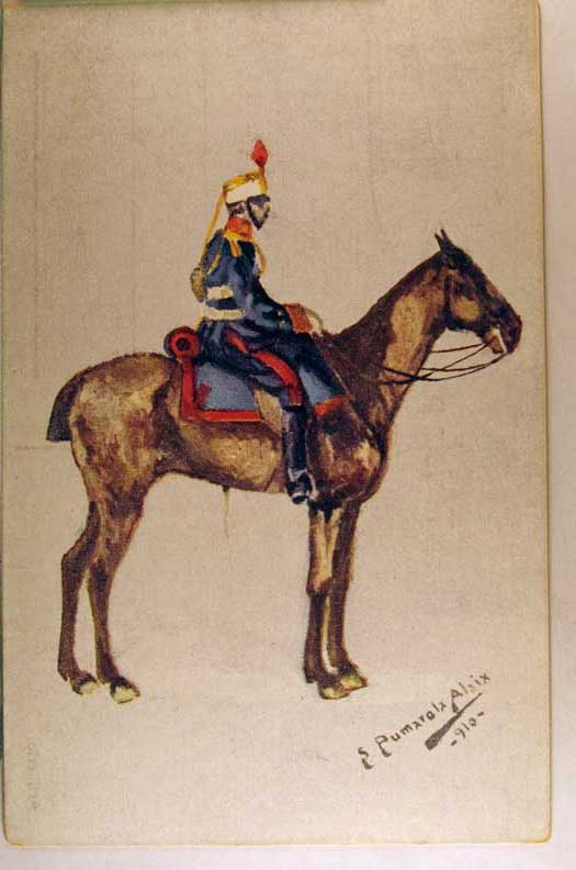 Card # 7165. View Larger | Rotate Italian Regg. Genova Cavalleria, 1919, Green Color, Art. Sig. DB m cor wear F