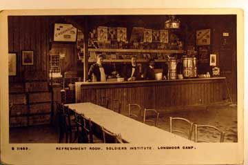 Card # 89819. View Larger | Rotate British Military, Real Photo, “Refreshment Room, Soldiers Institute, Longmoor Camp” m cor wear F-VF
