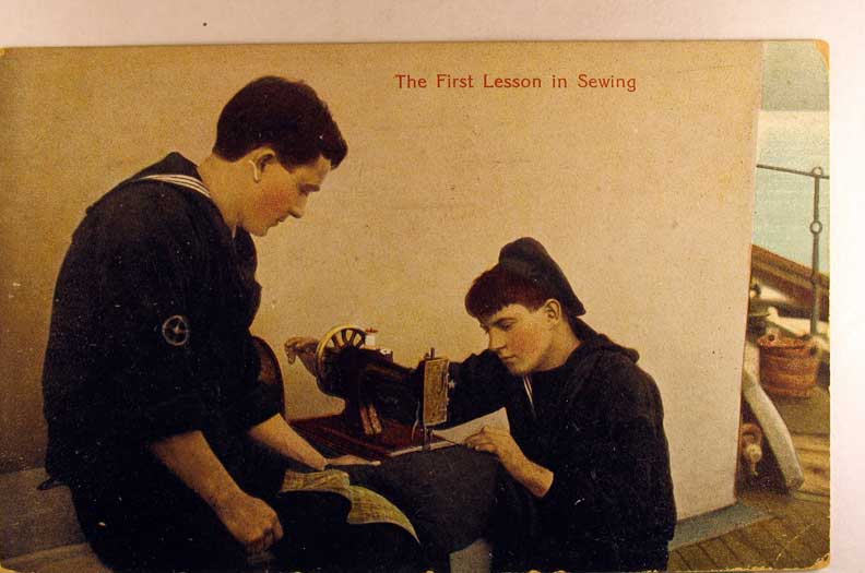 Card # 17118. View Larger | Rotate U.S. Sailors, “The First Lesson in Sewing”, Color DB F
