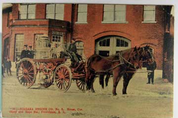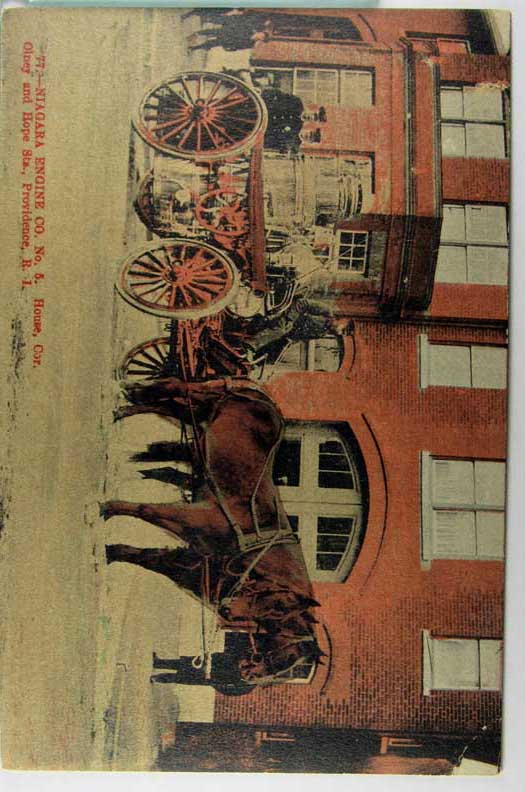 Card # 142415. View Larger | Rotate Horse-Drawn Fire Engine, “Niagara Engine Co.”, Providence, Rhode Island, Tinted Photogravure DB m cor cr F-VF