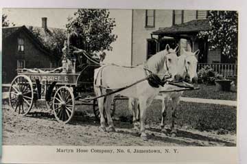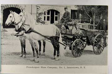 Card # 168569. View Larger | Rotate Horse-Drawn Fire Engine, Jamestown, New York, Printed Photo UB VF