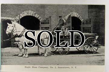 Card # 168573. View Larger | Rotate Horse-Drawn Fire Engine, Jamestown, New York, Printed Photo UB VF