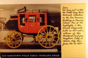 Card # 29089. View Larger | Rotate Wells Fargo Bank Historical Collection, “Old Hangtown Wells Fargo Overland Stage” m cor cr F-VF