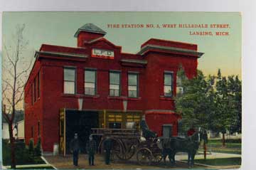 Card # 188827. View Larger | Rotate Horse-Drawn Fire Wagons, Lansing, Michigan, Tinted Printed Photo DB m cor cr Near VF