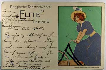 Card # 171242. View Larger | Rotate Adv. “Elite” Bicycles, German Pub., Used 1909 UB pwof & cor wear F