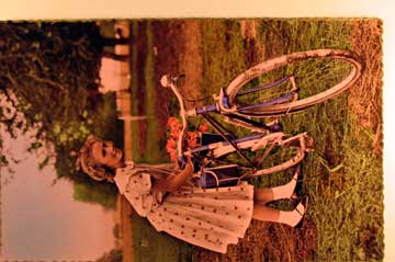 Card # 22532. View Larger | Rotate French Tinted photo, Girl w/ Bicycle VF