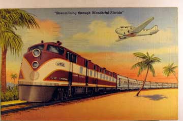 Card # 29. View Larger | Rotate Tropical Florida ser. with “The Champion” Train, used 1942, quality Linen VF