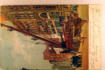Card # 47337. View Larger | Rotate “Hook and Ladder In Action”, Ill. P.C. Co. # 1945, color, used 1906 UB mpwof & m edge wear