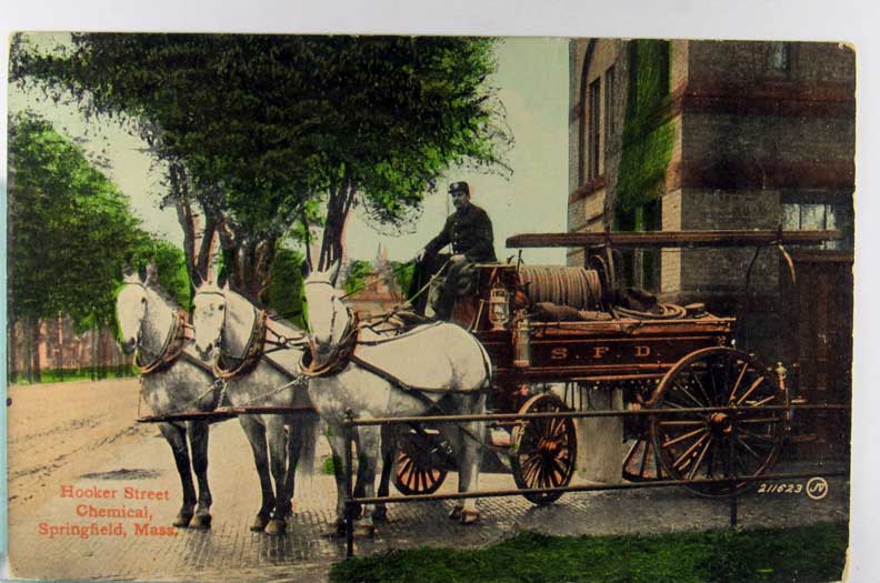 Card # 168557. View Larger | Rotate Horse-Pulled Fire Wagon, Springfield, Massachusetts, Tinted Printed Photo DB m cor wear & m edge cr F-VF