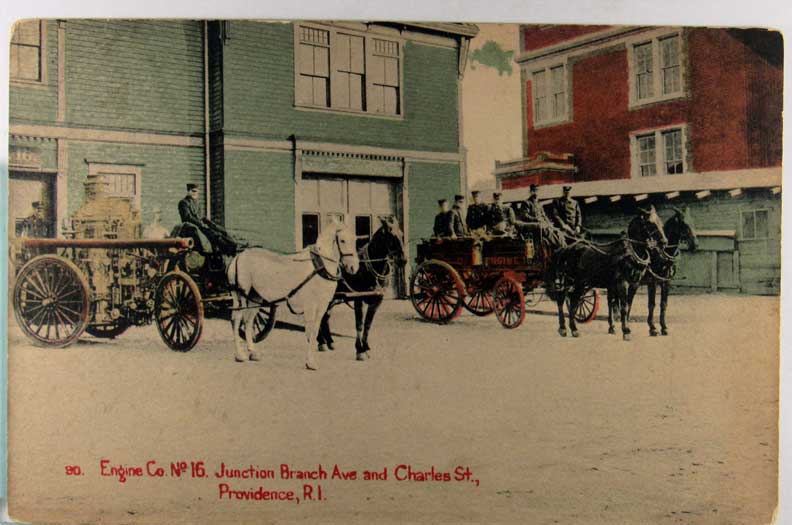 Card # 171448. View Larger | Rotate Horse-Drawn Fire Engine, Providence, Rhode Island, Tinted Printed Photo, Used Same 1910 DB m cor wear VF