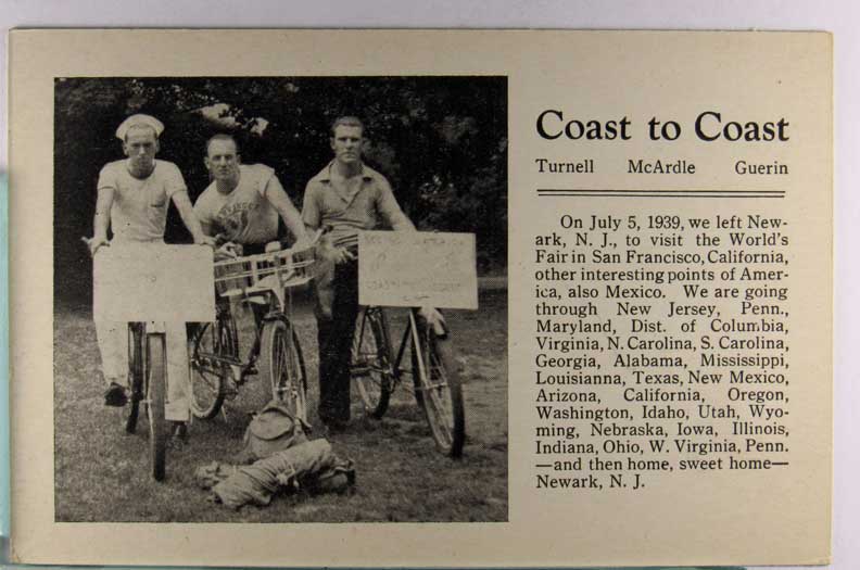 Card # 183519. View Larger | Rotate Bicycle Travelers, “Coast to Coast”, Printed Photo, Dated 1939 VF