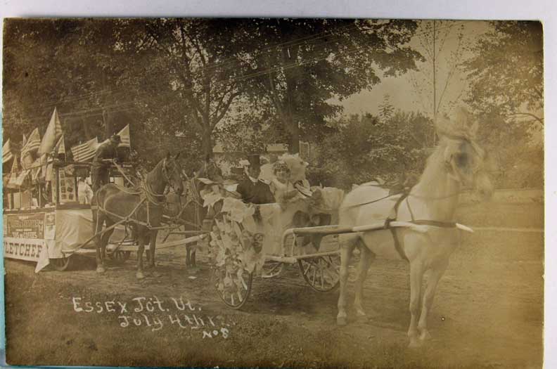 Card # 195090. View Larger | Rotate H0rse-Drawn Parade Float, Real Photo w/ AZO P.C. back, Essex Jct., Vermont VF