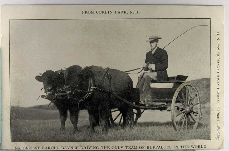 Card # 195507. View Larger | Rotate Buffalo-Pulled Wagon Traveler from Corbin Park, New Hampshire, Printed Photo UB F-VF