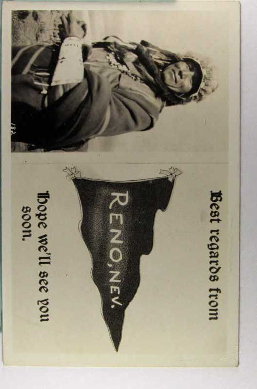 Card # 195606. View Larger | Rotate Native American, Real Photo, Used Reno, Nevada 1939 m cor cr F-VF