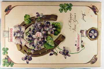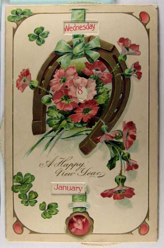 Card # 158622. View Larger | Rotate Hold to the Light, Die-Cut, New Year w/ 1909 Year Date, Used 1908 UB Near VF