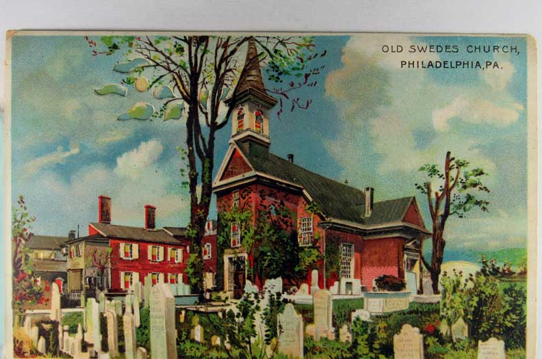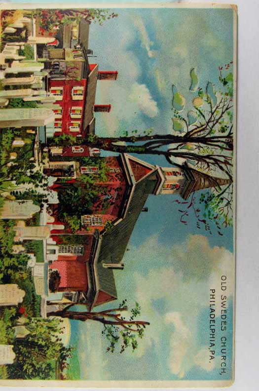 Card # 160481. View Larger | Rotate Hold to the Light, Die-Cut, “Old Swedes Church”, Philadelphia, Pennsylvania UB m cor wear F-VF