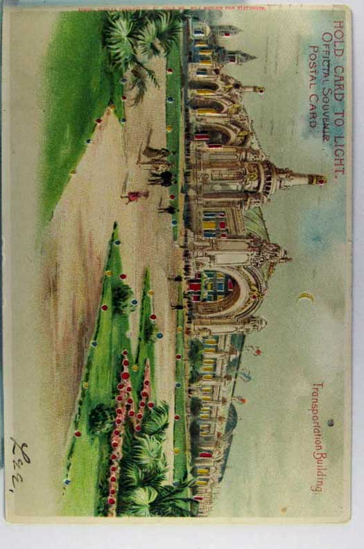 Card # 193931. View Larger | Rotate 1904 St. Louis Expo., Hold To The Light, Die Cut, Transportation Bld. UB pwof & m cof F-VF