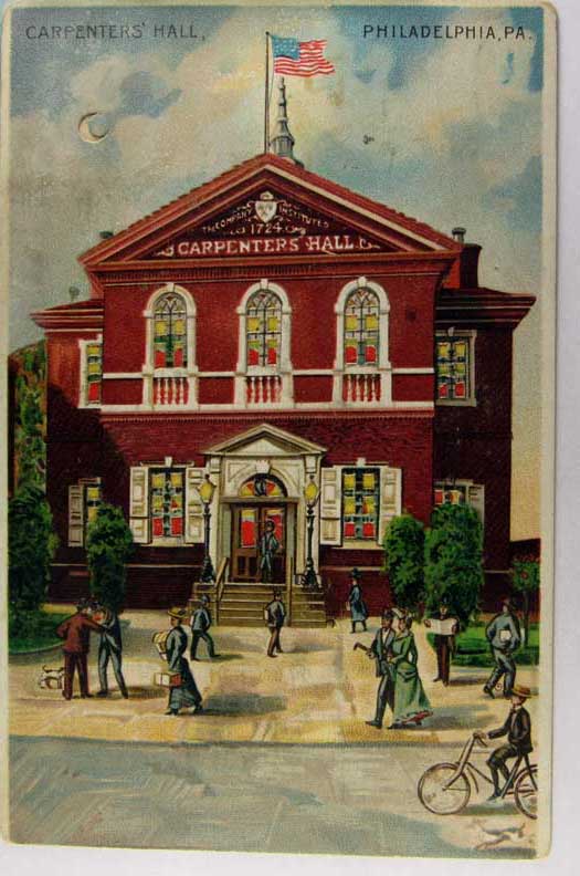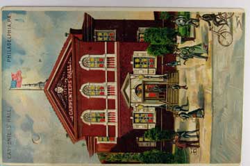 Card # 162804. View Larger | Rotate Hold to the Light, Die-Cut, Philadelphia, Pennsylvania, “Carpenter’s Hall”, Used 1907 UB m cor wear Near VF