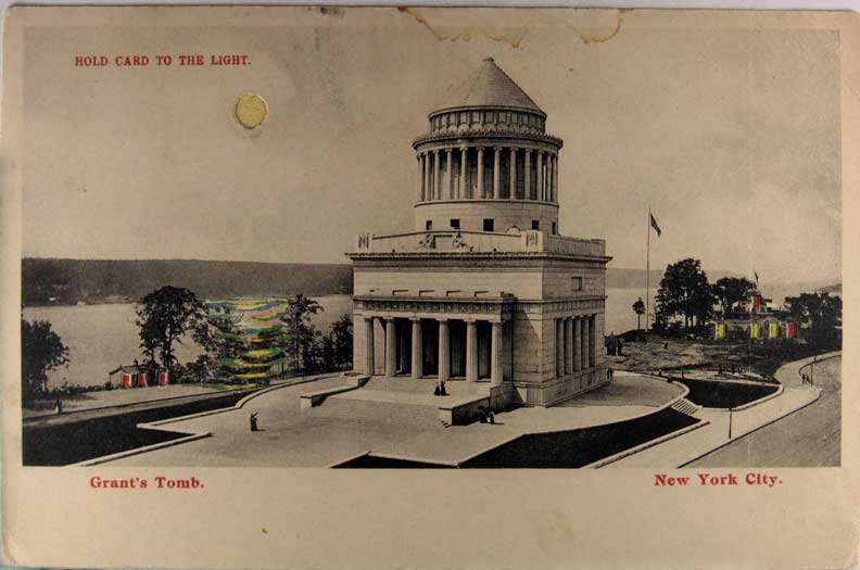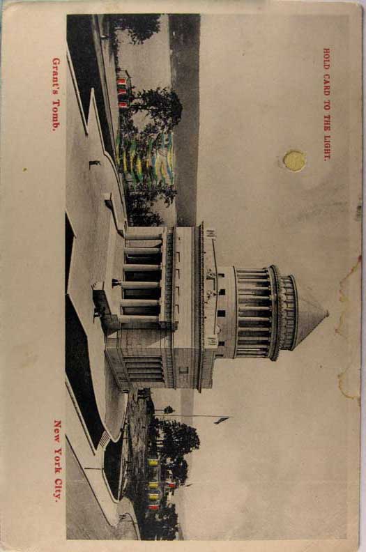 Card # 162806. View Larger | Rotate Hold to the Light, Die-Cut, New York, Grant’s Tomb, Used 1906 UB m edge st & cor crs F-VF