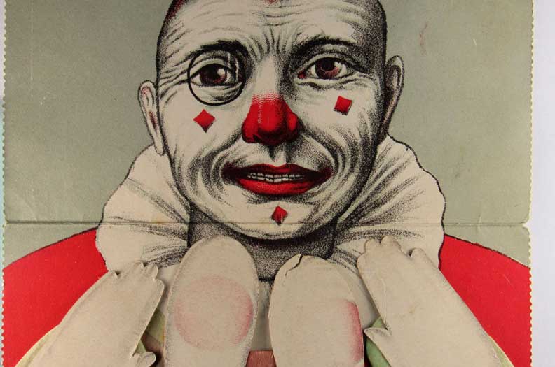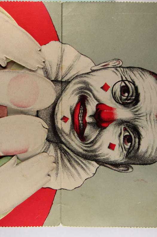 Card # 162920. View Larger | Rotate Novelty Fold-Out Honeycomb Arms & Legs on Clown, Used 1906 UB hing wear F-VF
