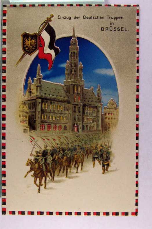 Card # 155938. View Larger | Rotate Hold To The Light, Die Cut, W.W. I German Patriotic ser., “Truppen in Brussel” DB Near VF